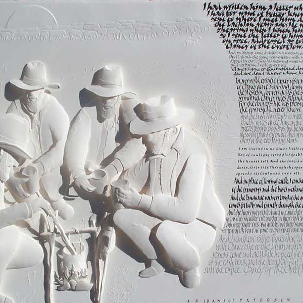 Dave chose to create this magnificent limited edition as a triptych to suggest the sense of movement and energy of this well loved poem by Banjo Paterson. It is a screenprint with the title hand embossed and the word “Man” has been illuminated in 23 ct gold. Dave chose the Italic letterform using various weights and manipulated styles to convey the message of this wonderful poem. We are offering the triptych unframed as well as framed as per the image.